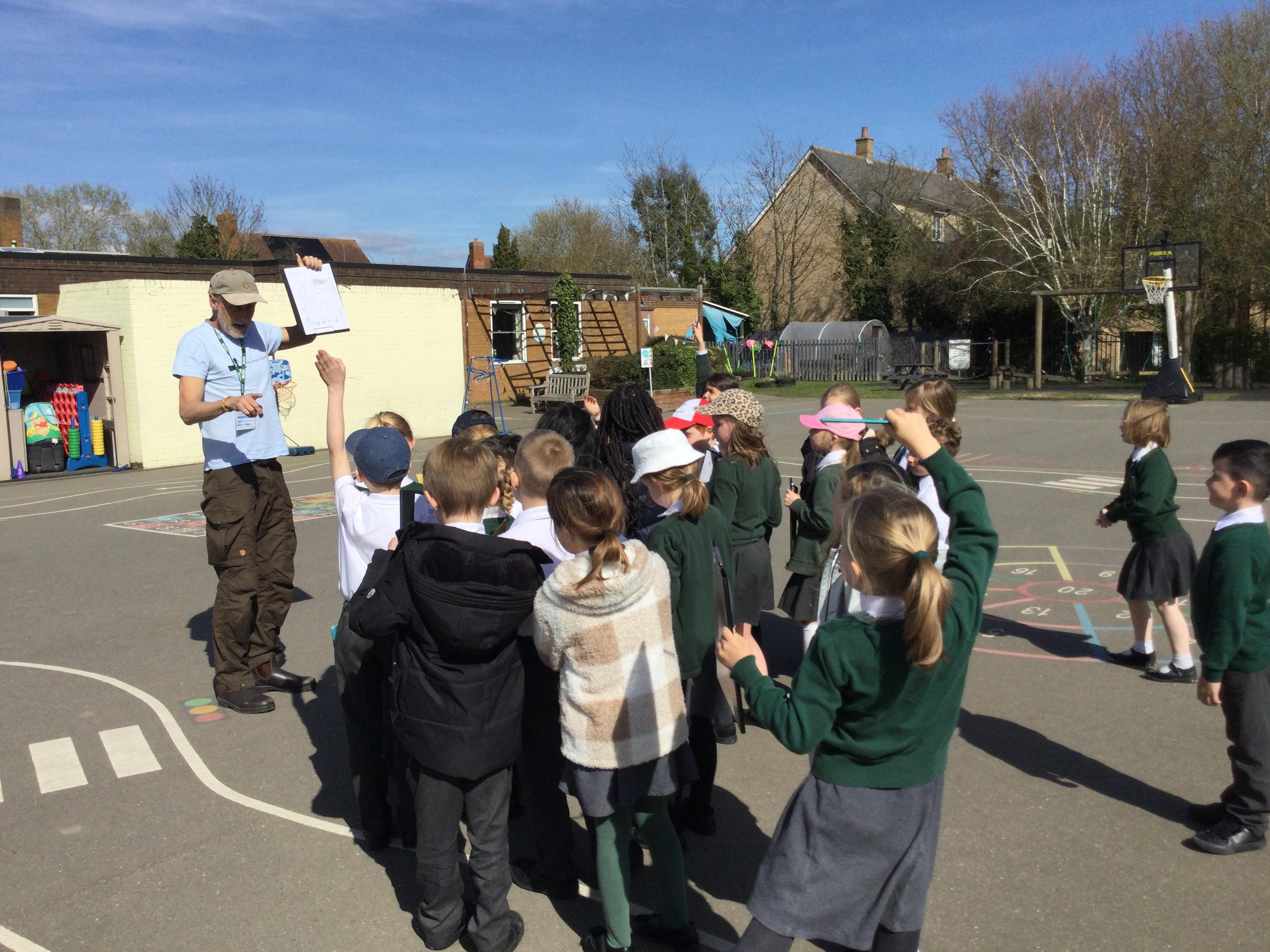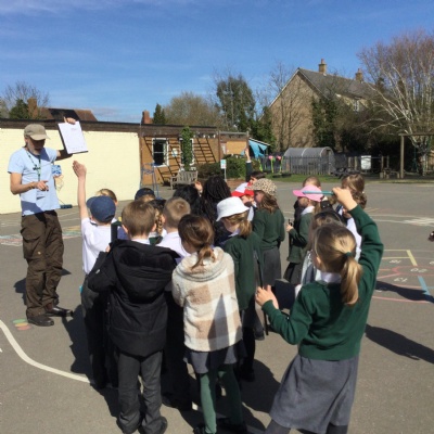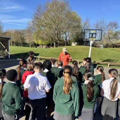 We invite established visitors in to talk to the children so that the children connect with the wider community. These visitors include religious visitors, CAFOD, Witham Foodbank, local authors, Witham Librarians, RSPB volunteers, and a local bee keeper to name but a few. We also try to link up with specialists and experts in curricular areas who come in to teach or to provide a rich on site 'trip' experience. These include Mrs Ruddock, our music specialist, Stephen from Victrix, a historical visitor and Adrian Hall, an outdoor learning expert and explorer. In addition to this, we link virtually with many organisations, which enable our children to receive an enriched learning experience and an ability to connect with the wider community and wider world. During Science Week for example, we linked up with Essex Farmers so that children could follow live events on the farm. We are committed to educating children about sustainability and caring for our natural world and all of our virtual work connects to our commitment to Laudato Si, the message communicated to us from Pope Francis.