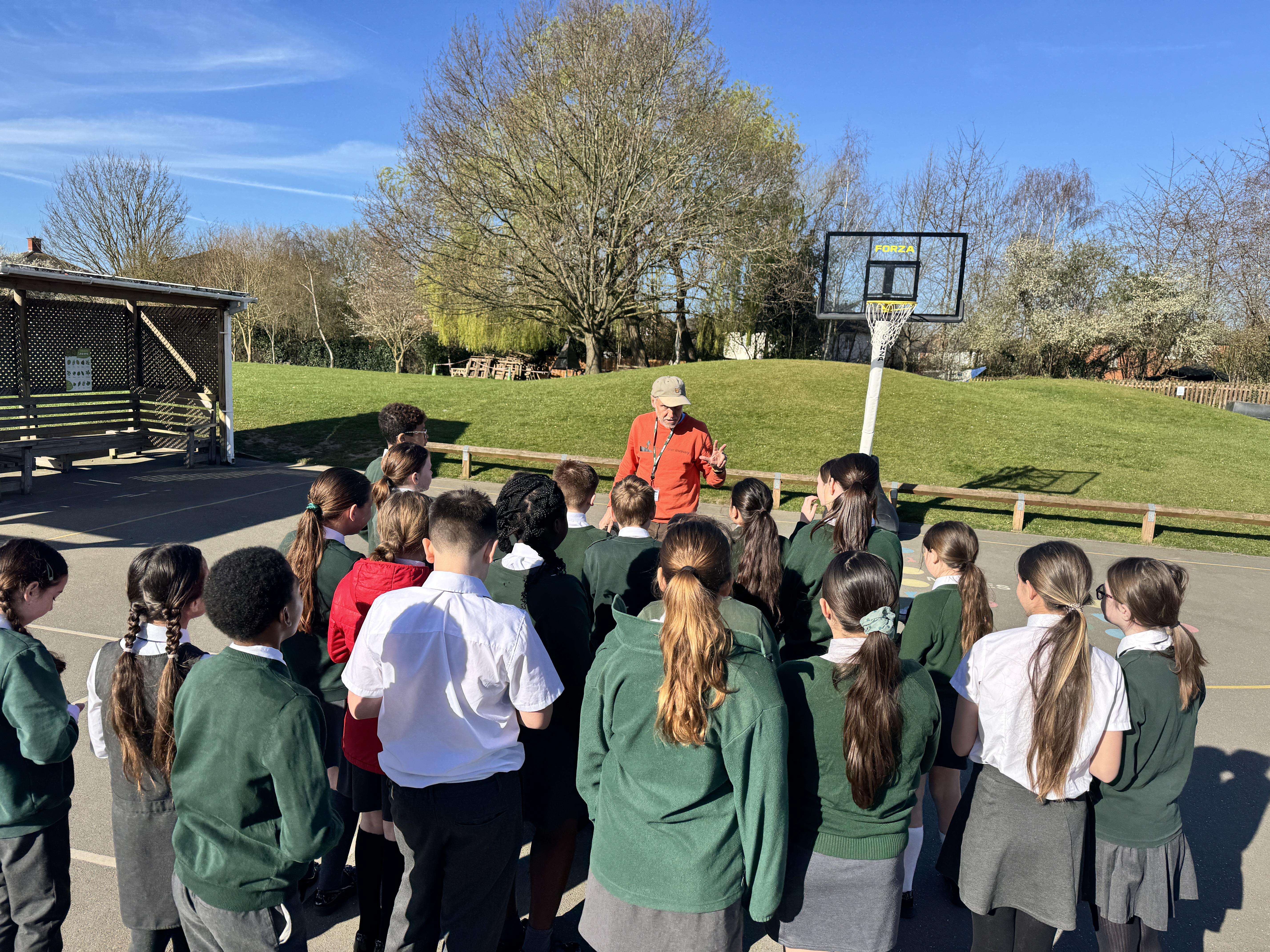 Our staff aim to take learning outside if the delivery of curricular areas can be as good or even better in the natural environment. In addition, we move beyond the school grounds. Our local area study involves a trip to Witham library, a talk about local history, field work to look at land use, an exploration of the water cycle and more. We link our off-site trips to our curricular areas. This could involve studying rocks with the RHS geology expert at Hyde Hall or making Saxon soup in Danbury Park. It may also involve climbing the historic stairways at Layer Marney Tower. Experiencing different periods through re-enactments supports our learners. Taking part in District Sports to represent the school at a higher level in athletics is just one other way to excel outside at Holy Family School.