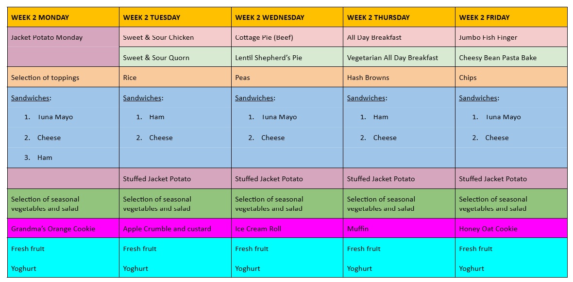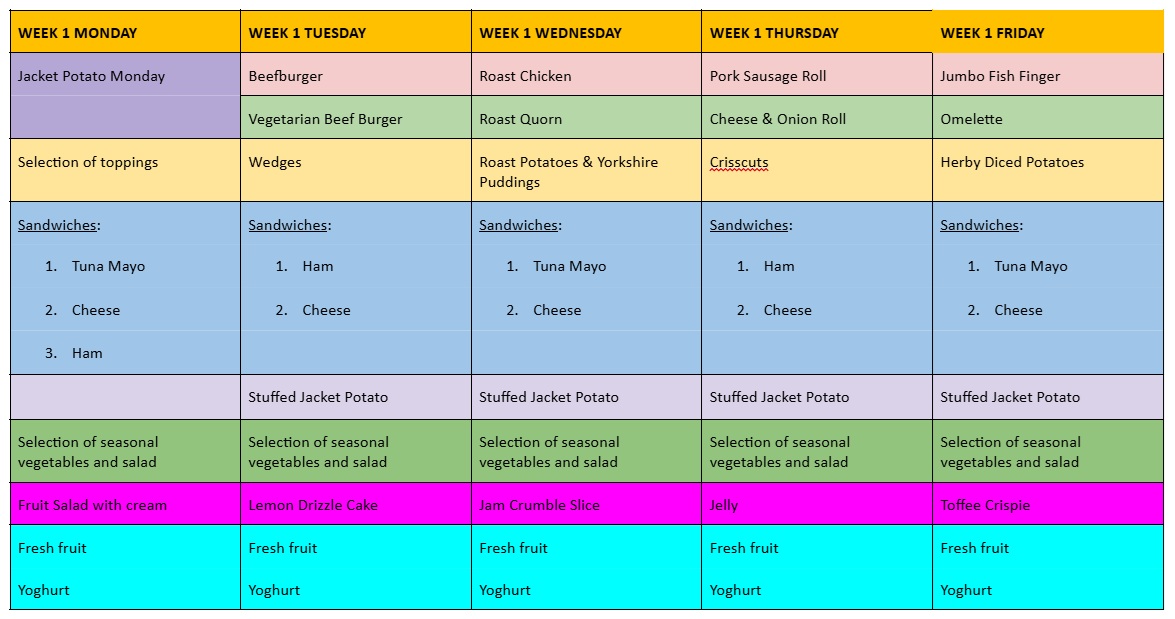 The menu is published each week on ClassDojo so that all parents are aware in advance of that week's food options.