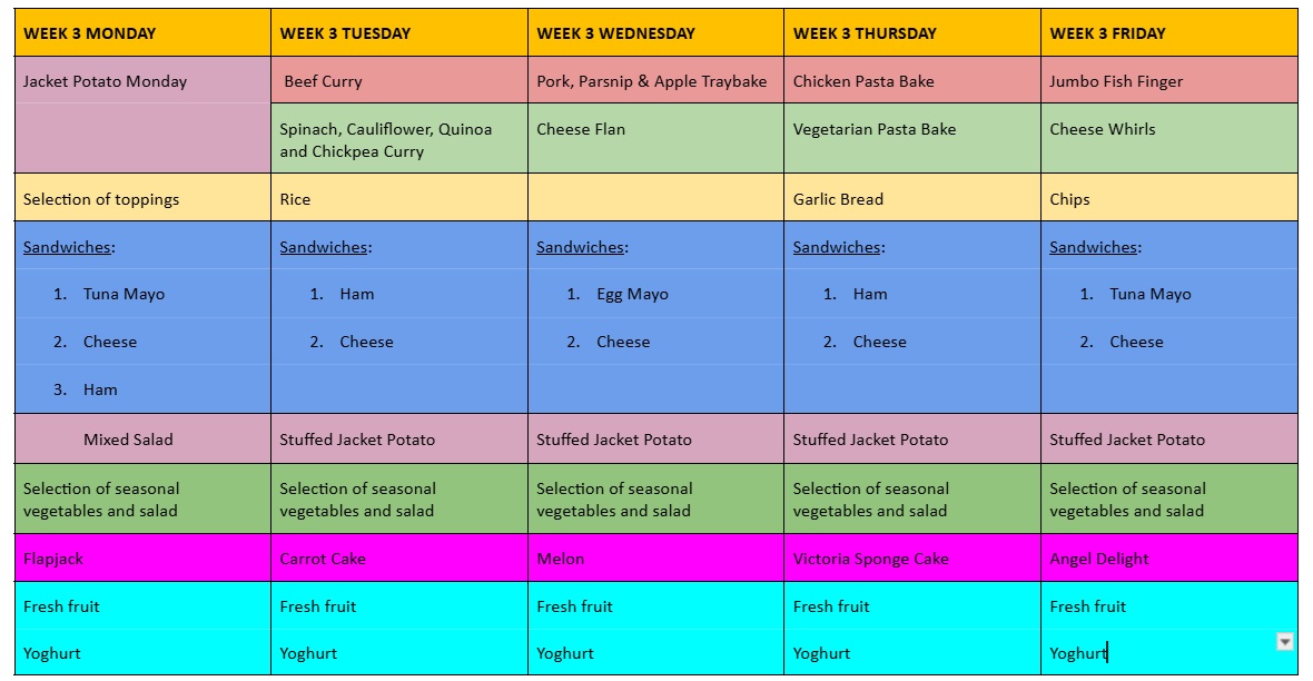 Below are the 3 weekly menus currently on rotation: